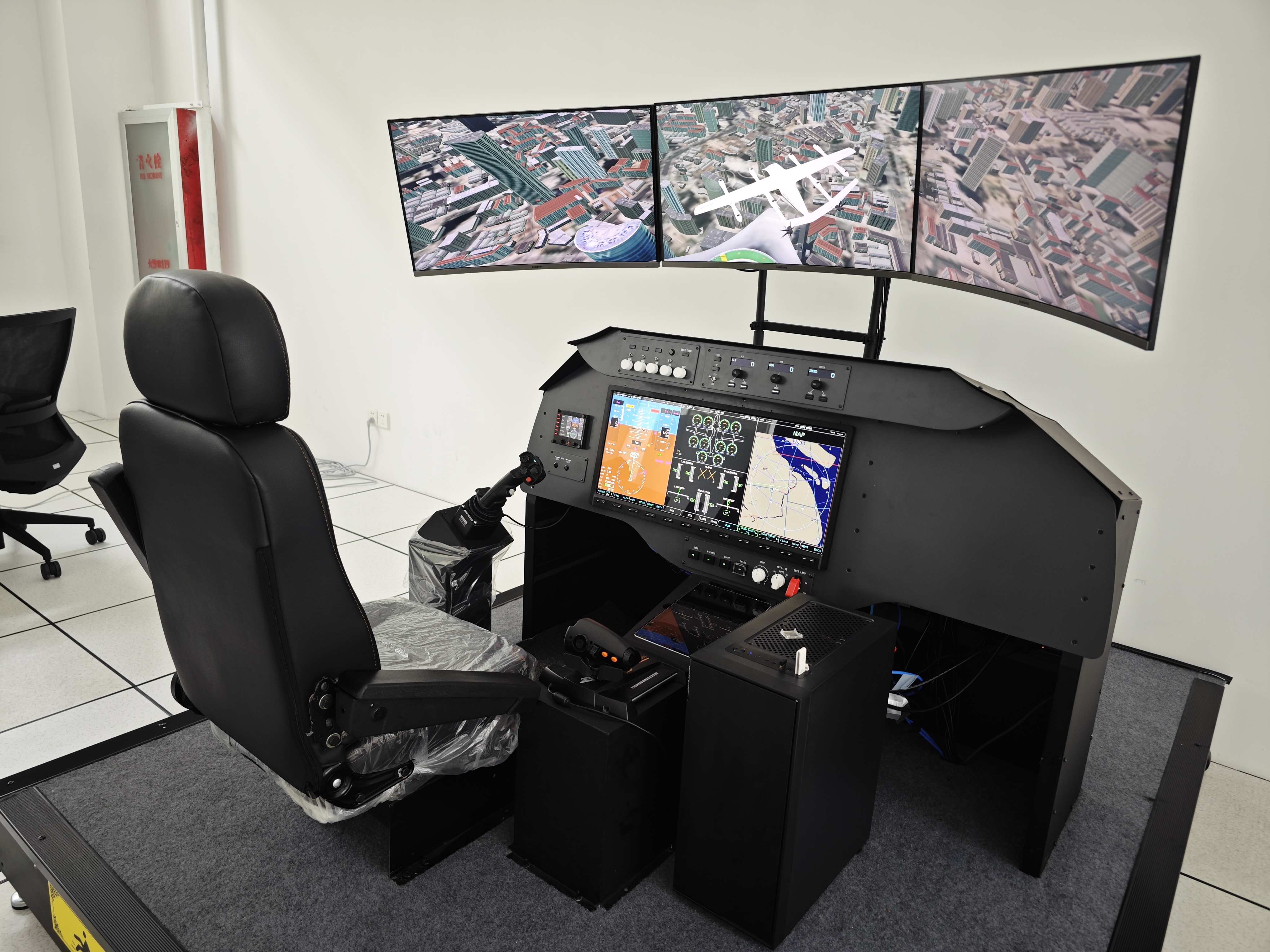 2、eVTOL駕駛艙模擬器:1:1 仿真復(fù)合翼eVTOL飛行器座艙,集成了先進的大屏幕儀表系統(tǒng)和多種真實機載航電設(shè)備,可接入增強視景系統(tǒng),可加載飛行器空控制律,設(shè)計有教員管理軟件。真實的儀表反饋與外部視景,可配置不同的操作方式用于飛行員評估與飛行培訓(xùn)。